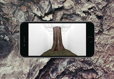 Ausgehend von der Ausstellung „Ausstellen des Ausstellens“ der Kunsthalle Baden-Baden wurde eine WebApp entwickelt bei der das Smartphone selbst zum Ausstellungsrahmen wird.